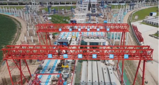 项目包含主线桥、互通立交等9座桥梁,需架设6132片预制箱梁,其中40米大跨度箱梁628片,单榀最大吊装重量达156.5吨,施工规模与技术难度居全线前列。目前,全线施工已进入立体化攻坚阶段,项目团队在“三维战场”上排兵布阵,以架桥机为主力,汽车吊与提梁机协同作战,全力攻克6132榀预制箱梁的吊装任务。