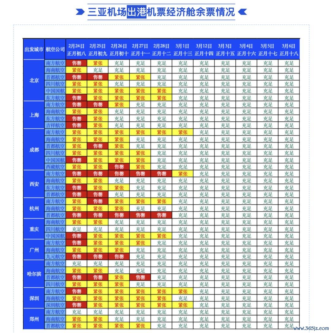 这与海南三大机场的不少返程航线经济舱机票已售罄,仅剩公务舱有关。记者注意到,三亚和海口两大机场到西安等地的部分航班,从大年初五开始就显示经济舱已售罄,这种情况一直持续到正月十二(2月28日)。