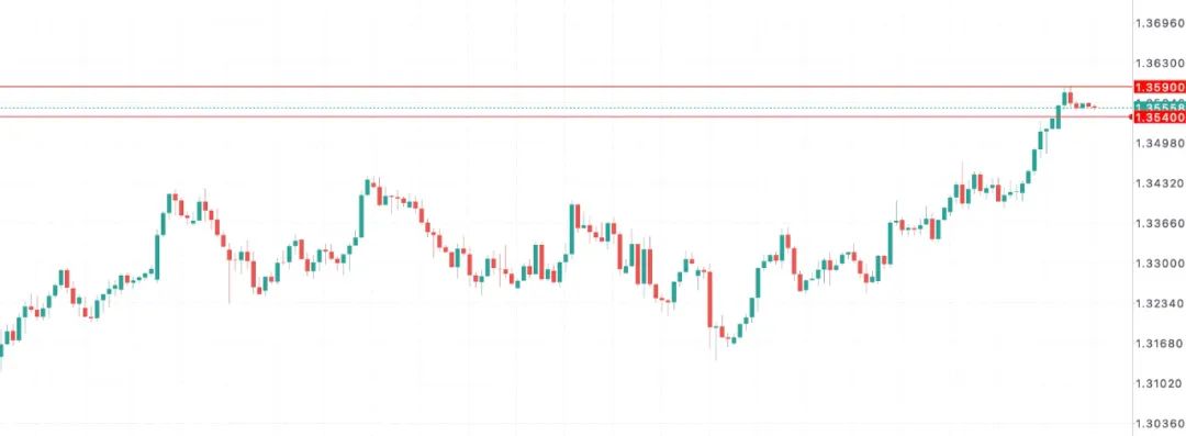 英镑周一突破上周五创出的历史高位1.3540水平,汇价升至1.3590区域受阻回落,短期内英镑仍可能继续回落调整。若英镑进一步回落至1.3540区域下方,将加深其下行调整幅度,或测试1.3450支撑区域。一旦汇价在支撑区域出现企稳迹象,将迎来再度反弹机会,并再次挑战1.3590区域甚至创新高测试1.3655及更高区域。